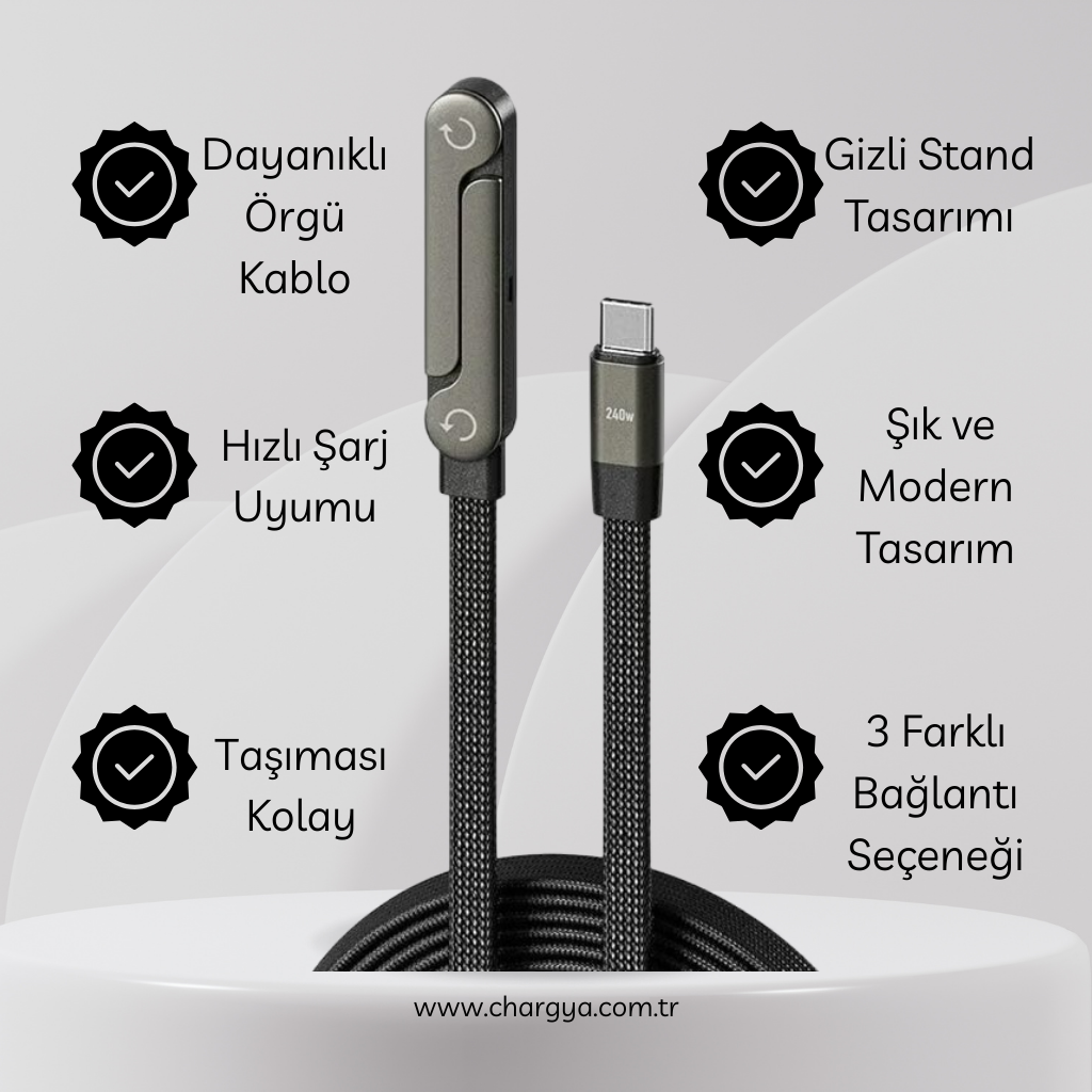 Tek bir kabloyla hem şarj hem de kullanım konforu sağlar.